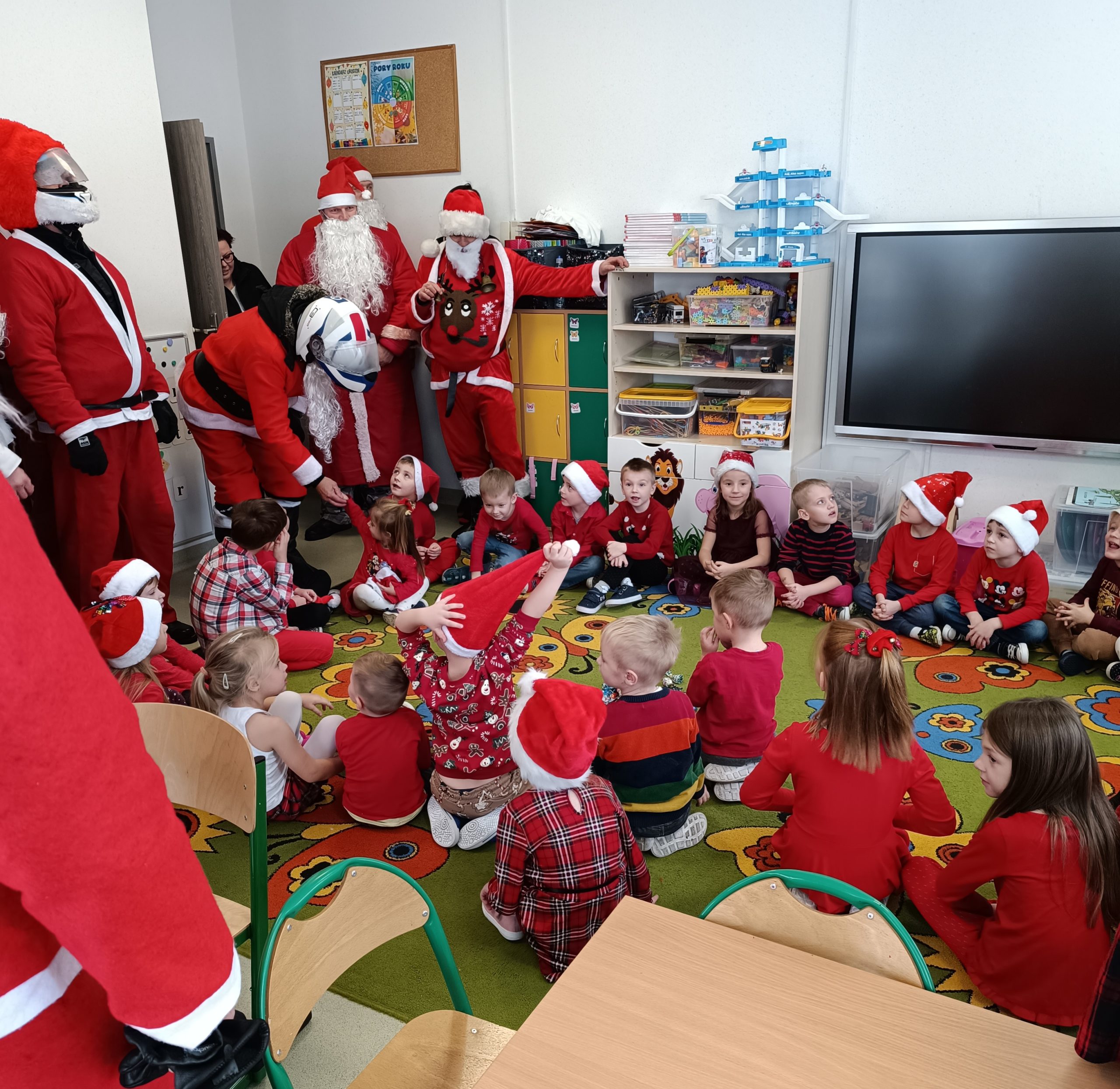 Dziś, 6 grudnia naszą Szkołę i Oddział Przedszkolny odwiedził niezwykły gość. Miał czerwony strój, długą, białą brodę, dźwigał na plecach bardzo ciężki worek, a w nim prezenty. To nie mógł być nikt inny tylko MIKOŁAJ- niezwykle wesoły, rozmowny i chętny do wspólnej zabawy i tańca. Tradycyjnie, jak co roku zawitała u nas równie ekipa cudownych Mikołajów z Grupa Motocyklowa Wolbórz. Dziękujemy za odwiedziny i słodkie prezenty.